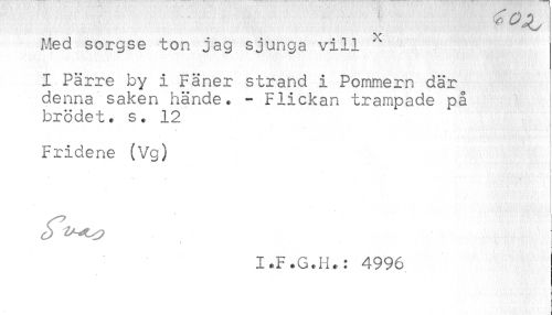 //// Med sorgse ton jag sjunga vill ^ //// I Pärre by i Fäner strand i Pommern där //// denna saken hände. - Flickan trampade på //// brödet. s+ 12 //// Fridene (Vg) //// t ' //// I.F.G.H.: 4996 //// f //// i ////