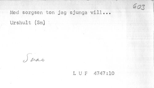 //// ^ ^J //// Med sorgsen ton jag sjunga vill... //// i //// Urshult (Sm) //// f //// ! //// i //// i //// i //// L U F 4747:10 ////