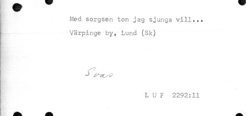//// Med sorgsen ton jag sjunga vill... //// Värpinge by? Lund (Sk) //// . ^ //// * //// L U F 2292:11 ////
