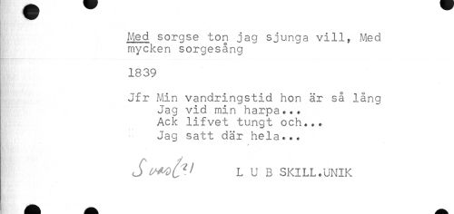 //// 1839 //// Jfr Min vandringstid hon är så lång //// Jag vid min harpa... //// Ack lifvet tungt och... //// I Jag satt där hela... //// L U B SKILL.UNIK ////