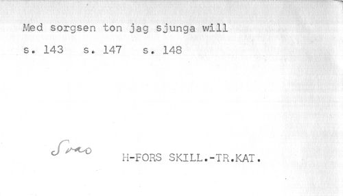 //// Med sorgsen ton jag sjunga will //// s. 143 s, 147 s. 14-8 //// ^ H-FORS SKILL.-TR.KAT. ////