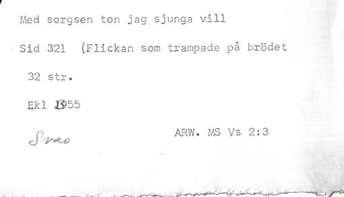 //// Med sorgsen ton jag sjunga vill //// Sid 321 (Flickan som trampade på brödet //// 32 str. //// Ekl 1355 //// n ARW. MS Vs 2:3 ////
