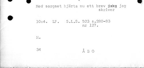 //// Med sorgset hjärta nu ett brev gxkg jag //// j skriver //// * //// ^ 10:4. LF, S.L.S. 523 s.280-83 //// nr 127. //// N. //// 34 ÅBO ////