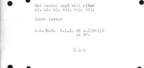 //// * Med tanken uppå mitt elämd //// aj * aj, aj„ voj, voj, voj, //// Jakob Lassus //// 6:4.M.M. S.L.S. 45 s.112-113 //// nr 47. //// o //// A B O ////