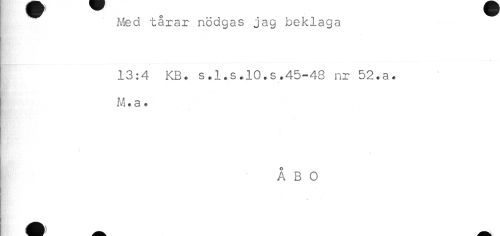 //// Med tårar nodgas jag beklaga //// 13:4 KB. s.l.s.10.s.45-48 nr 52.a. //// M. a * //// * //// ÅBO ////
