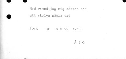 //// Med vemod jag mig sätter ned //// KKs * < - * //// ^^ att skriva några ord //// 12:6 JE SLS 22 s.568 //// ÅBO ////