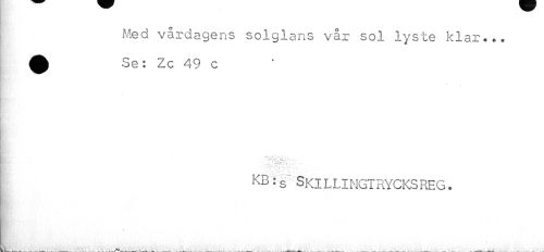 //// Med vårdagens solglans vår sol lyste klar... //// i ^ Se: Zc 49 c //// R- * //// * .. - . ' //// . * *.. i * . //// KB:s SKILLINGIRYCKSREG. ////