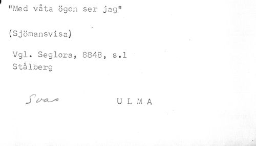 //// "mea vata ogon ser jag" //// (Sjömansvisa) //// Vgl. Seglora, 8848, s.l //// Stålberg //// J U L Al A ////