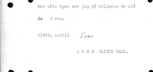 //// ^^ Med våta ögon ser jag på böljorna de blå //// - //// - //// 3 str. //// , //// 11482, s.llll //// U L M A BLIXTS SA^vlL. ////