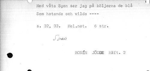 //// Med våta ögon ser jag på böljorna de bla //// Som hotande och vilda ---- //// s. 32, 33. Mel.not. 6 str. //// J //// K' //// * //// ^ ROSÉN JÖDBE Häft. 2 //// \ ////