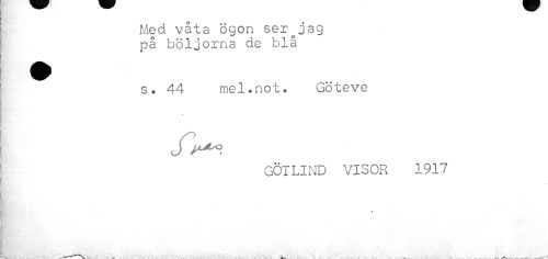 //// Med våta ögon ser^jag //// på böljorna de blå //// s. 44 mel.not, Göteve //// GÖTLIND VISOR 1917 ////