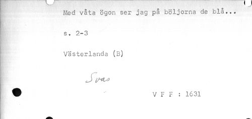 //// Med våta ögon ser jag på böljorna de blå... //// * *** //// s. 2-3 //// Västerlands (B) //// # V F F : 1631 //// ' ////