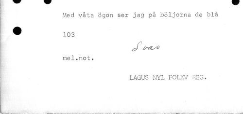 //// Med våta ögon ser jag på böljorna de blå //// ^ 103 //// mel.not * //// LAGUS NYL FOLKV REG. //// .. — . . - . ' . ^ ^ . . . . . . . ... .... ... ////