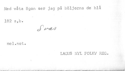 //// Med våta ögon ser jag på böljorna de blå //// 182 a,b. //// mel.not. //// LAGUS NYL FOLKV REG. ////