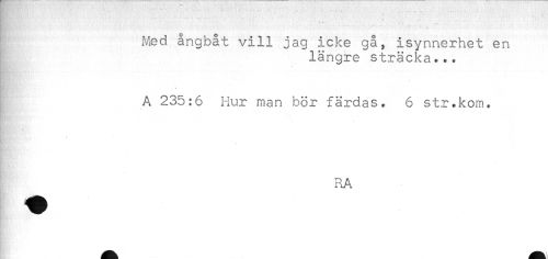 //// ! Med ångbåt vill jag icke gå, isynnerhet en //// längre sträcka... //// A 235:6 Hur man bör färdas. 6 str.kom, //// RA ////