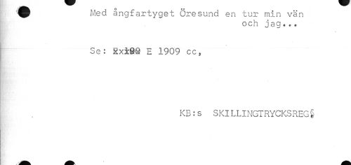 //// Med angfartyget Öresund en tur min vän //// och jag <.. //// } Se: ExiM E 1909 cc, //// * //// KB:s SKILLINGTRYCKSREG§ ////
