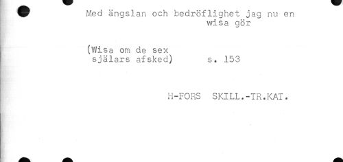 //// ^^ Med ängslan och bedröflighet jag nu en //// wisa gör //// (Wisa om de sex //// själars afsked) s. 153 //// H-FORS SKILL.-TR.KAT. ////