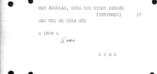 //// MED ÄNGSLAN, SORG OCH STORT BESVÄR //// (BEKYMMER) 17 //// I JAG MIG EN VISA GÖR //// N 1809 b //// S V A S ////