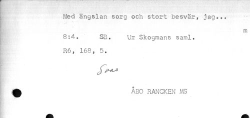 //// Med ängslan sorg och stort besvär, jag*** //// n //// 8:4. SB. Ur Skogmans saml. //// R6, 168, 5. //// ÅBO RANCKEN MS //// f. i,.', - ' ////