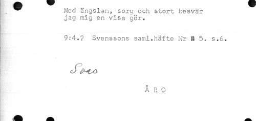 //// ^ Med ängslan, sorg och stort besvär //// jag mig en visa gör. //// 9:4.? Svenssons saml.häfte Nr 8 5. s.6. //// ÅBO ////
