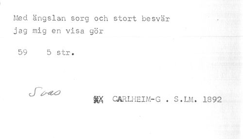 //// Med ängslan sorg och stort besvär //// jag mig en visa gör //// 59 5 str. //// %% CARLHEIM-G . S.LM. 1892 ////