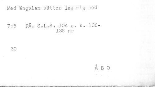 //// Med ängslan sätter jag mig ned //// 7:5 PÄ. S.L.S. 104 a. s. 136- //// 138 nr //// 30 ////