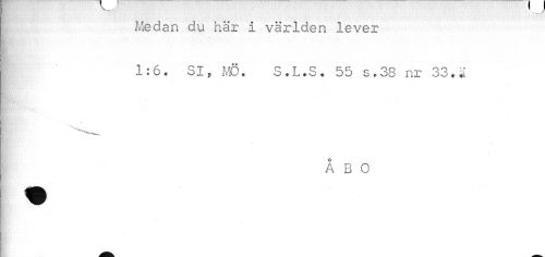 //// ; Medan du här i världen lever //// ! 1:6. SI, MÖ. S.L.S. 55 s.38 nr 33. ^ //// B. //// I': ÅBO ////