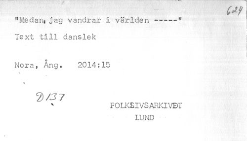//// "Medan% jag vandrar i världen -----" //// < //// Text till danslek //// i //// j //// t //// Nora, Ång. 2014:15 //// FOLKSIVSARi^IVBI //// LUND ////