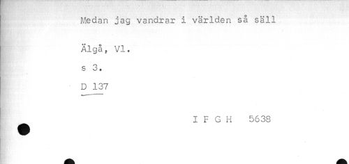 //// I Medan jag vandrar i världen så säll //// I Älgå ? VI. //// s 3. //// - D 137 //// I F G H 5638 ////