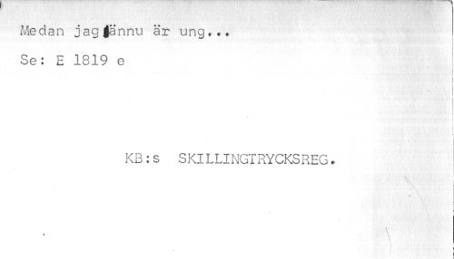 //// Medan jagfännu är ung... //// Se: E 1819 e //// t //// r //// : //// ! //// i //// t //// KB:s SKILLINGIRYCKSREG. //// , ) //// f //// i //// [ //// \ //// ! //// * s //// ! ////
