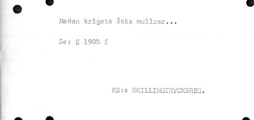 //// Medan krigets åska mullrar... //// Se: E 1905 f //// . //// KB:s SKILLINGIRYCKSREG. ////