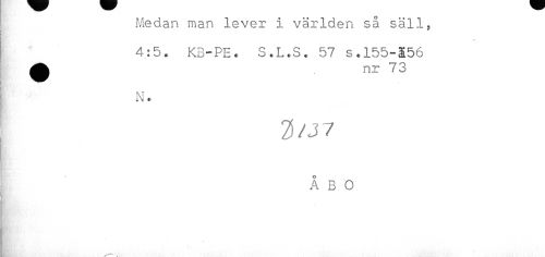 //// Medan man lever i världen så säll, //// 4:5. KB-PE. S.L.S. 57 s.155-$56 //// } N. //// i- . //// 2S/J7 //// o //// A B 0 //// B.-.. . ////