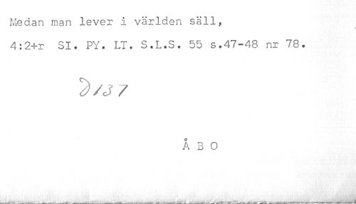 //// Medan man lever i världen säll, //// 4:2+r SI. PY. LT. S.L.S. 55 s.47-48 nr 78. //// Å 3 O ////