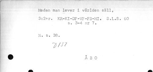 //// Medan man lever i världen säll, //// 3:2+r. KR-KI-DF-VF-FB-HI. S.L.S. 60 //// s. 3-4 nr 7. //// i # s * 38 * ////