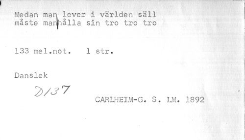 //// Medan man lever i världen säll //// måste manjhålla sin tro tro tro //// i //// * //// 133 mel. no t,. 1 str. //// Danslek //// CARLHEIM-G. S. LM. 1892 //// ! //// t //// ! //// i //// I ////
