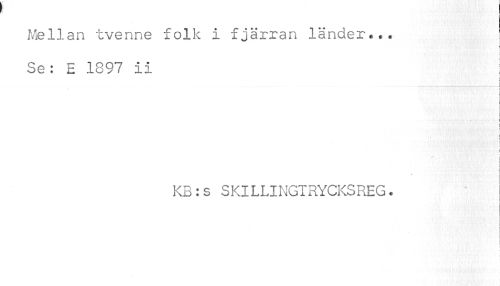 //// Mellan tvenne folk i fjärran länder... ^ //// Se: E 1897 ii //// i //// ) //// ! //// t //// i //// i //// i //// KB:s SKILLINGTRYCKSREG. //// i ////
