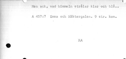 //// Men ack, vad himmeln strålar klar och blå.. //// A 457:7 Emma och Näktergalen. 9 str. kom. //// * //// RA ////