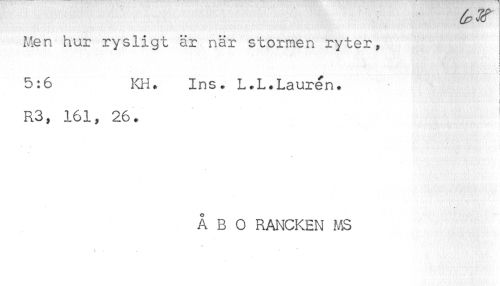 //// Men hur rysligt är när stormen ryter, //// t //// < //// i //// 5:6 KH* Ins. L.L.Lauren. i //// * //// I //// R3, 161, 26. //// ÅBO RANCKEN MS //// ... * ////