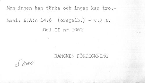 //// Men ingen kan tänka och ingen kan tro,- //// Maal<, E<A:n 14.6 (oregelh.) - v.? s. //// Del II nr 1062 //// < //// RANCKEN FÖRIECMnNG //// * *.. ' t < ' * //// - * //// . v____^ . ... ...... ... ' . ., ^^SS. ////