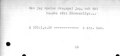 //// Men jag spelar dragspel jag, och det //// kanske rätt försvarligt... //// B 105:1,s.68--- 6 str. kom. //// I RA ////