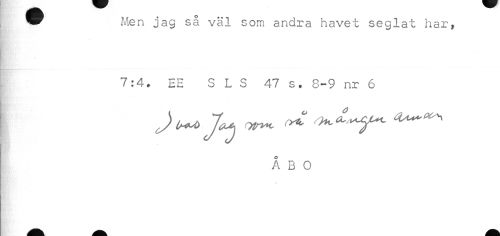 //// * Men jag så väl som andra havet seglat har, //// 7:4. EE SLS 47 s. 8-9 nr 6 //// * //// ÅBO ////