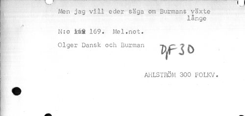 //// Men jag vill eder säga om Burmans växte //// } långe //// N:o 169. Mel.not. //// [ Olger Dansk och Burman ^^ jj) C) //// AHLSTRÖM 300 FOLKV. ////