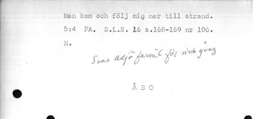 //// Men kom och följ mig ner till strand. //// 5:4 PA. S.L.S. 16 s.168-169 nr 106. //// N. //// i . ^ ^^ //// < //// ^ ÅBO ////