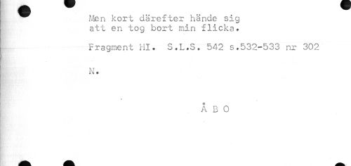 //// Men kort därefter hände sig //// att en tog bort min flicka. //// Fragment Hl. S.L.S. 542 s.532-533 nr 302 //// N. //// * //// ' ÅBO ////