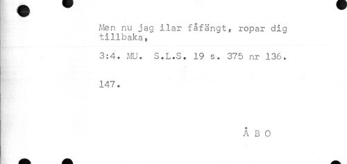 //// Men nu jag ilar fåfängt, ropar dig //// tillbaka, //// hi HHHå)^ < *— //// 3:4. m. S.L.S. 19 s. 375 nr 136. //// 147. ////