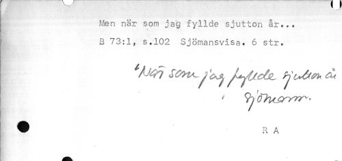 //// Men när som jag fyllde sjutton år... //// b'*' . ' . * //// . //// B 73:1, s.102 Sjömansvisa. 6 str. //// ^^ ^ ^^ ^ ////