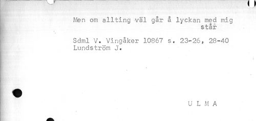 //// Men om allting väl går å lyckan med mig //// I står //// * //// Sdml V. Vingåker 10867 s. 23-26, 28-40 //// Lundström J. //// * //// * //// * //// * //// U L M A ////