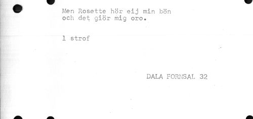 //// ty Men Rosette hor eij min bön //// och det giör mig oro. //// 1 strof //// ' //// DALA FORNSAL 32 ////
