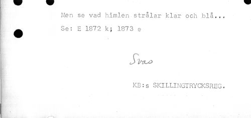 //// Men se vad himlen strålar klar och blå... //// ^ Se: E 1872 k; 1873 e //// KB:s SKILLINGTRYCKSREG. //// - ' ////