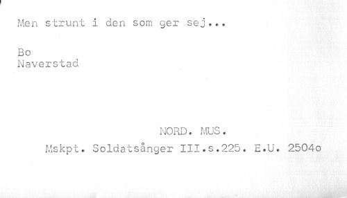 //// Men strunt i den som ger sej... //// Bo //// Naverstad //// NORD. ms. //// Mskpt. Soldatsånger III.s.225. E.U. 2504o ////